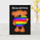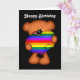 Cartão de saudação/bilhete de nota de dois ursinhos de pelúcia segurando corações gigantes do arco-íris orgulho gay.. com as palavras "Feliz Aniversário" Cartão de saudação de ursinho bonitinho de Ricaso