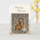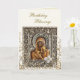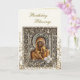 Ornamentado ouro falso metal escrolls videiras e folhas com flores brancas e um ícone cristão ortodoxo de Theotokos e Criança Cristo num elaborado cartão de aniversário de quadros. Personalize com todos os seus detalhes pessoais e preferências.