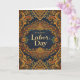 Cartão Ornate Blue Gold Scrollwork Happy Labor Day