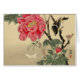 O pássaro empoleirou-se no ramo, olhando uma borboleta, com a grande flor no arbusto. Impressão do vintage da coleção da Biblioteca do Congresso (impressões e desenhos japoneses). O eample fino do japonês velho tradicional art. adiciona algum sabor de oriente.