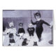 Trabalhos de arte engraçados do vintage nas máscaras das cinzas que mostram um professor que tenta ensinar um grupo de gatinhos cantar