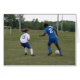 pequena garota de futebol se levantando contra a grande garota de futebol, incentivo