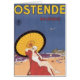Poster de viagens belga do vintage para o recurso do mar-side de Ostende, etiquetado a "rainha das praias," e notável como a residência do verão da família real belga, em francês