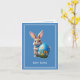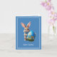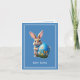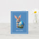 Ein hübscher Osterhase mit blauer Schleife und Osterei. Digital erstellt.