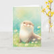 Uma lontra adorável se coloca em meio a um campo de margaridas, olhando para cima com uma expressão pacífica e contente. As tonalidades azul e verde macia do fundo, combinadas com as flores brilhantes e as bolhas suaves, criam uma atmosfera serena e alegre. Esta imagem encantadora captura perfeitamente a natureza lúdica, mas pacífica, das lontras, fazer ideal para amantes da natureza e para qualquer um que desfruta da simples beleza da vida selvagem.