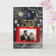 Envie um cartão elegante de Aniversário de Casamento para seu cônjuge ou amigos com essa Dourada Seda Negra e embelezada com ouro e padrão de brilho e decoração de Natal. Adicione duas fotos.