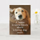 Esta carta de boas-vindas apresenta uma fotografia de um lindo cão que recupera ouros que está olhando carinhosamente de seu lugar em repouso no sofá. O texto na frente diz, "Uma casa nunca é solitário onde um cachorro amoroso espera", enquanto o texto do dentro diz simplesmente, "Ame você." Ambos podem ser alterados ou excluídos.