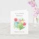 Cartão de Saudação de Páscoa Amigo com ovos coloridos e tulipas de primavera.