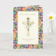 Com uma cruz dourada com uma sobreposição de lírio de Páscoa branco e uma borda colorida de ovos de Páscoa ucranianos. Um versículo das escrituras também está abaixo da cruz.