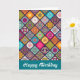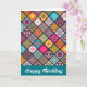 Um padrão impressão étnico colorido de mandalas da cultura indiana ou marroquina/do Oriente Médio. Este design vibrante tem azul-rosa, amarelo e uma gama completa de designs coloridas e intrincadas de mandala. A saudação de aniversário pode ser totalmente personalizada para qualquer tipo de saudação.