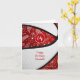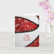 Este convite de cartão de aniversário de basquete fofo ou qualquer outra ocasião apresenta a imagem realista de uma bola de basquete estilizada e abstratamente superdimensionada, que tem painéis alternados vermelhos e brancos recoloridos na frente do cartão - um padrão de rabiscos de paisleys, flores e penas em branco cobre os painéis vermelhos da bola de basquete - personalize com sua própria mensagem de aniversário - por katz_d_zynes
