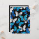 Cartão Padrão Escuro Sem Costura com Borboletas Azuis Mor