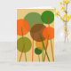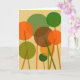 Um design floral de arte moderna e abstrato geométrico de flores redondas em caules de cor laranja, verde e castanha.