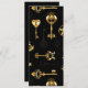 Padrão perfeito de chaves antigas, douradas e silhuetas em fundo preto.