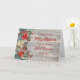Feliz Natal para o pai e a madrasta com folhagem de inverno russa e flores de aquarela com fundo de madeira de campo.