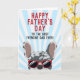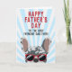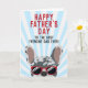 Frenchies, este cartão do dia dos pais do bulldogue francês fará o dia do seu pai. O design apresenta uma ilustração de um bulldogue francês de cor azul merle com óculos de sol vermelhos e a frase "Feliz Dia dos Pais ao melhor pai Frenchie de todos os tempos!" escrita na frente. O interior do cartão diz "Para o papai, eu te amo mais do que guloseimas", mas pode ser alterado para a frase que você escolher.