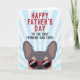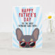 Frenchies, este cartão do dia dos pais do bulldog francês fará o dia do seu pai. O design apresenta uma ilustração de um lilac e tan bulldog francês com óculos de sol vermelhos e a frase "Feliz Dia dos Pais ao melhor pai Frenchie de todos os tempos!" escrita na frente. O interior do cartão diz "Para o papai, eu te amo mais do que petiscos" mas pode ser alterado para a frase que você escolher.