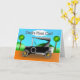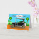 Cartão de Dia de os pais engraçado com uma mensagem de carro vintage e de "Pai Primeiro Carro!".
