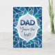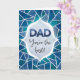 Este cartão apresenta um design azul abstrato com as palavras “Pai, você é o melhor" na frente. Dentro do cartão está escrito "Tenho tanta sorte de ter um pai tão incrível para celebrar este Dia dos Pais. Você me ensinou tanto, eu te amo. Feliz Dia dos Pais!".