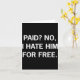 Cartão Paid No I Hate Him For - Funny Sarcasm