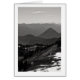 Uma fotografia de paisagem a preto e branco de colinas rolantes e montanhas até onde o olho pudesse ver. Linhas de árvores aqui e ali. E algumas manchas de neve ainda permanecem no início do verão. Imagem Copyright ©2023 Kimberly J Tilley. www.zazzle.com/store/developingnature