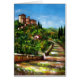 Paisagem da Toscana, vista de Bolonha, pintura acrílica na canvas 2008 de cor, vibrante e expressiva beleza do campo italiano e campos em verde-claro, amarelo, castanho, azul, branco, linda flora de Verão, flores, ciprestes e oliveiras, antiga casa rustica sob o céu azul e nuvens. Pintura acrílica sobre a canvas.