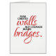 Passe um pouco de inspiração e motivação com este cartão de saudação, que apresenta as palavras "medo cria muros, mas coragem constrói pontes" em um guião elegante e fluente e sans serif lettering. Design e Copiar © W.H. Sim. Todos os Direitos Reservados. Mais informações em zazzle.com/wordsofwhimsy