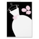 Cartão de saudação temático de noiva com um design bonito em tons de rosa, preto e branco com um vestido de noiva estilizado em um cabide acompanhado por um buquê na frente, e dentro rosa pálido. Um design personalizável para você personalizar com seu próprio texto, imagens e ideias.