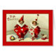 Cartão de saudação de 5" x 7" com uma imagem de namorados vintage de duas crianças vestidas de palhaço, uma com coração e outra com arcos. Um tem um brinquedo ao seu lado, o outro uma bola. Fundo vermelho. O sentimento externo diz "Para o meu Namorados." O sentimento personalizável dentro diz "Memórias Fazeres de nós". Veja a caixa de favoritos, o saco de presentes e a etiqueta. Veja toda a coleção de Cartão de Saudação do Dia do Namorados nos CONVITES | Seção Convites e Cartões.