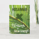 Folhas de palma constituem o fundo com uma cruz na frente. Domingo de Palma é um dia para cantar Hosannas para nosso Senhor e Rei. Deseje bênçãos a todos os cristãos neste dia sagrado.
