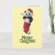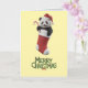 A cute Christmas card featuring ayoung Panda is wearing Santa hat sticking out of a Christmas stocking.