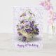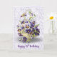 Cesta de pansy roxa com lavanda e padrão de renda branca para 95 anos.