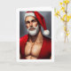 Papai Noel de Natal Quente - cartões de cartões de natal gay de Ricaso. Apresentando um belo e belo homem de peito nuo com barba de cinza vestindo um Pai Natal Copyright © Ricaso. Todos os direitos reservados