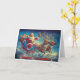 Papai Noel voando pelo céu noturno em seu trenó carregado de brinquedos para as crianças do mundo.