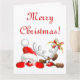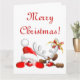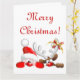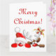 Cartão Papai Noel engraçado e desenho animado de rena