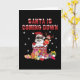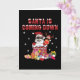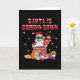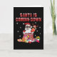 Lindo desenho de Natal com Papai Noel e renas com óculos de sol na chaminé com muitos presentes e a frase "Papai Noel está chegando".