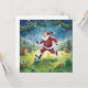 Cartão Papai Noel está jogando futebol no campo de Natal