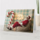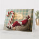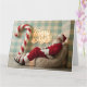 Cartão Papai Noel retrô relaxando em uma poltrona felpuda