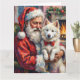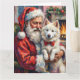 Cartão Papai Noel segurando a arte de Natal do Samoyed
