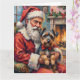 Cartão Papai Noel segurando arte de Natal do Terrier Tibe
