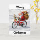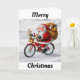 Traga alegria festiva com uma reviravolta divertida. Este charmoso cartão de Natal mostra o Papai Noel andando de bicicleta através da paisagem nevada, seu saco de presentes bateu sobre suas costas enquanto ele pedala alegremente ao longo. Um design divertido e caprichoso que combina a tradição de feriados com um toque de encanto moderno — perfeito para espalhar alegria a amigos, familiares ou entusiastas de ciclismo.