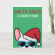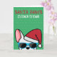 Se você conhece alguém que ama buldocos franceses e tem um bom senso de humor, este engraçado cartão de Natal francês é ideal para enviá-los durante o feriado festivo. A design apresenta uma ilustração ao estilo cartoon de um buldogue francês de cor branca vestindo um chapéu vermelho de Papai Noel e óculos de sol com a menção "Papais noeis Paws está chegando à cidade" escrita na frente. Na dentro diz-se "Desejar-te um Natal bonito", mas pode ser mudado para o teu gosto. Este design também está disponível com diferentes Bulls franceses de cor diferente.