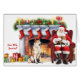 A frente deste cartão de boas-vindas de Natal tem uma imagem de um lindo Cachorro Akita que encontrou Papai Noel descansando ao lado da lareira, depois de entregar os presentes da família. Os papais noeis têm um último pacote, e o cão olha com expectativa para ele. O texto ao lado diz "Para mim, Papais noeis?" Todo o texto, dentro e saída é personalizável, então você pode alterá-lo ou adicioná-lo, se quiser. Veja mais imagens do Akita Dog, junto com dezenas de outros produtos da raça canina, na Vila dos Cães.