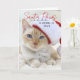 Design apresenta Papais noeis Paws, o gatinho branco mais bonito com olhos azuis vestindo um chapéu vermelho de Papai Noel pronto para desejar-lhe um Feliz Natal! Clique no botão Personalizar para personalizar nomes de família. Ou clique no botão Editar Design para mover o texto ou alterar a fonte, o tamanho da fonte ou a cor da fonte para torná-lo verdadeiramente seu. Arte original do Catgram Studio.