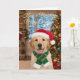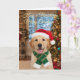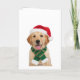 Envie desejos calorosos com este adorável cartão de saudação de Natal com um recuperador de ouro vestido com um chapéu de Papai Noel e um lenço verde festivo. Perfeito para amantes de cachorros, famílias e amigos, este cartão de feriado aconchegante captura a magia do Natal com um toque lúdico de estimação. Ideal para Cartões de natal, convites de férias e notas festivas que espalham alegria.