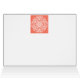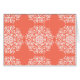 Esta mandala branca senta-se sobre um fundo de colorau ou salmão. As cores são claras e quentes. Parte da coleção Pras Mandala.