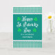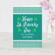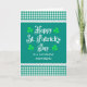 Um cartão de saudação bonito, em estilo country, para Dia de São Patrício para sua mãe, com painéis de gingham verdes e brancos no topo e no fundo, bordados com um cadinho branco. A saudação do cobrir é, "Dia de São Patrício Feliz" em letras brancas de safra no fundo verde-escuro com quatro folhas de shamrock verde mais claras nos quatro cantos e, "para uma MÃE maravilhosa" em letras brancas maiúsculas abaixo. A mensagem dentro é apenas uma sugestão e você pode alterá-la facilmente ou apagá-la se desejar.