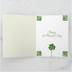 Esta Rua. O Cartão do Dia de Patrick apresenta pinceladas verdes em um fundo de maria verde-ornamentado e dourada. Irlandês dizendo... "Para cada pétala no shamrock, isso traz um desejo ao seu caminho... Boa saúde, boa sorte e felicidade, hoje e todos os dias."