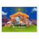 Feliz Natal para o nosso cartão de saudação em papel dos Seminários com uma ilustração mestiça da natividade e estrela de Belém. Citação de Isaiah 9:6 KJV escreveu dentro. Personalize a linha inferior do texto no cobrir e na mensagem interior, conforme desejado. Cortesia de S. Yanyeva. Arte, imagem e direitos de autor versos © Shoaff Ballanger Studios, 2025.