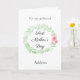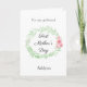 Um cartão para a primeira festa da mãe da namorada, com loureiro em aquarela e flores cor-de-rosa, que você poderá personalizar facilmente na frente com o nome dela. A mensagem no interior deste bonito cartão do Dia das Mães contém uma mensagem sincera, que você também pode personalizar se quiser. A parte de trás tem o mesmo loureiro em aquarela com flores cor-de-rosa e um espaço para você colocar o nome do bebê e "mamãe" ou o que você quiser. Uma lembrança doce do Dia das Mães, personalizada e com certeza será muito apreciada.